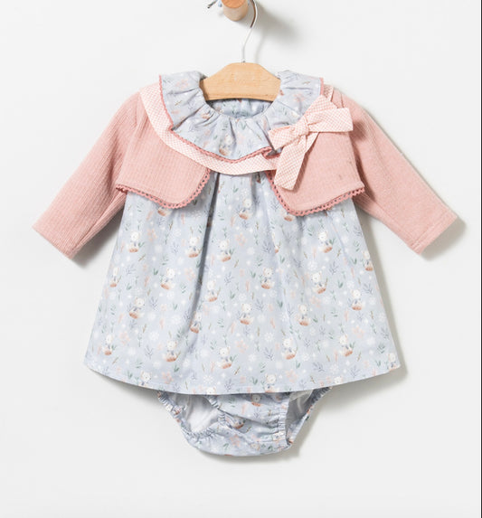 Vestido, chaqueta y cubre pañal - Coco Acqua invierno 2024