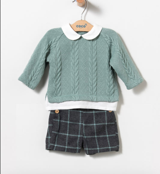 Jersey + bermuda cuadros gris - Coco Acqua invierno 2024