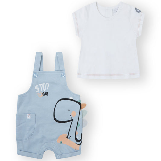 Camiseta y Peto bebé en azul con dino - Yatsi
