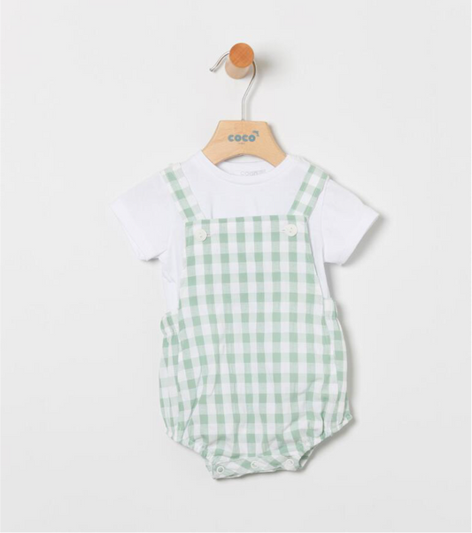 Peto niño en cuadros verde con camiseta blanca - Coco Acqua 2025
