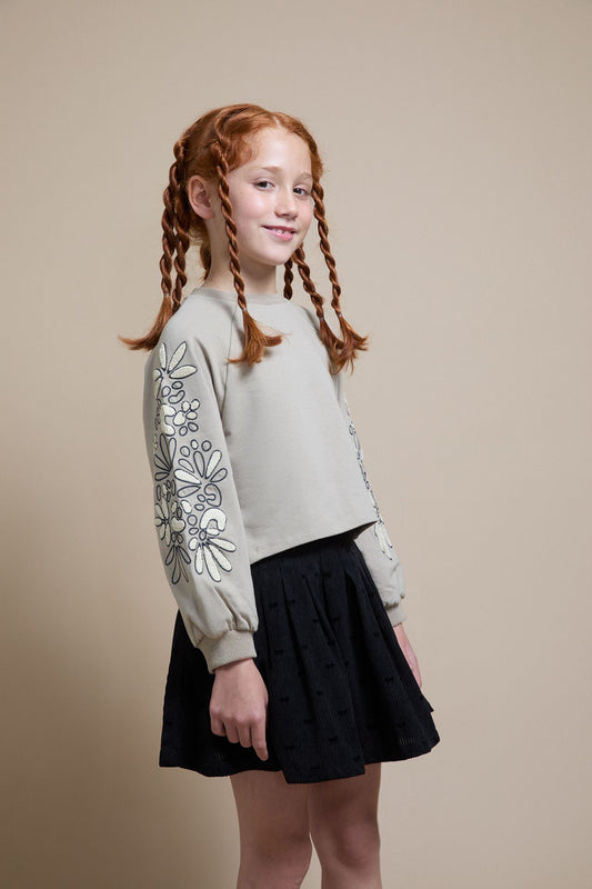 Sudadera niña con flores en manga - Newness invierno