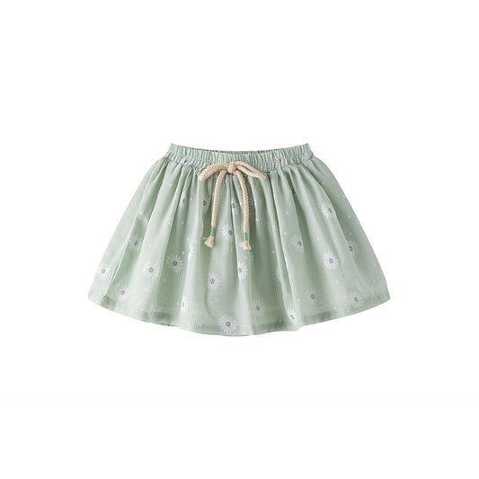 Conjunto de falda con flores verdes, con vuelo y camiseta - Newness