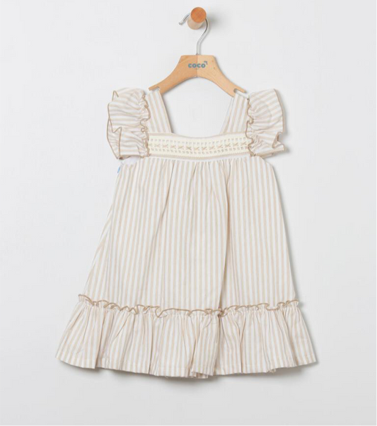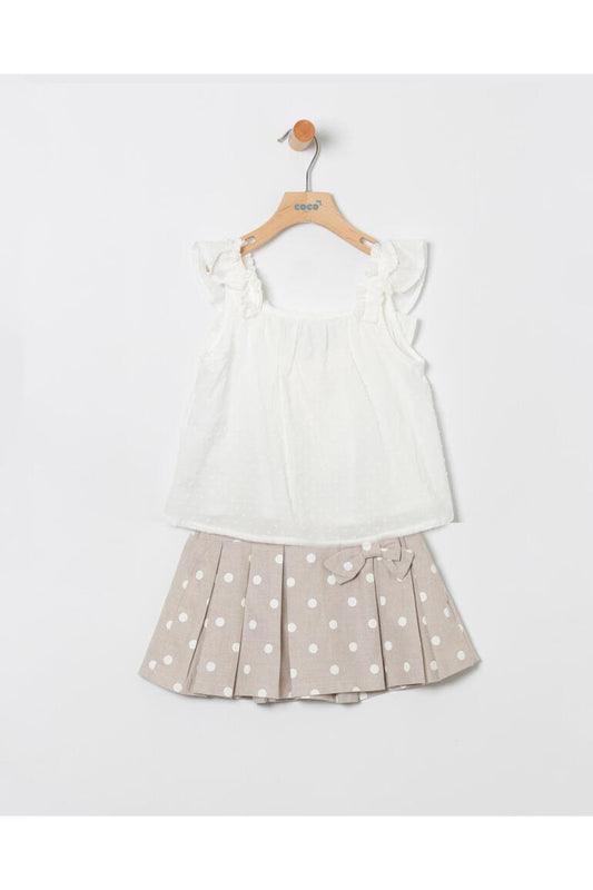 Conjunto niña blusón plumeti blanco y falda topos tostado - Coco Acqua 2025