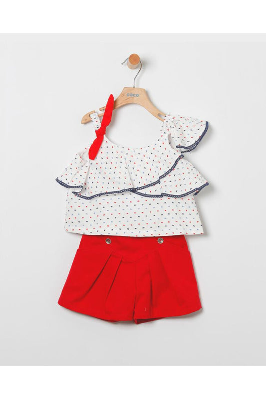 Conjunto niña blusón plumeti y short rojo - Coco Acqua 2025