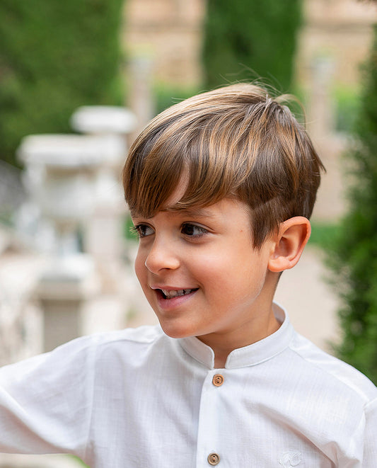 Conjunto niño, camisa y bermuda en color tostado - Coco Acqua colección 2025