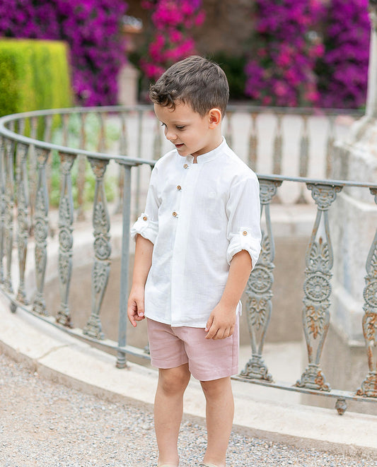 Conjunto niño, camisa y bermuda en rosa empolvado - Coco Acqua colección 2025