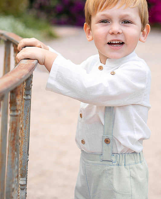 Conjunto niño, camisa y bermuda en verde suave - Coco Acqua colección 2025