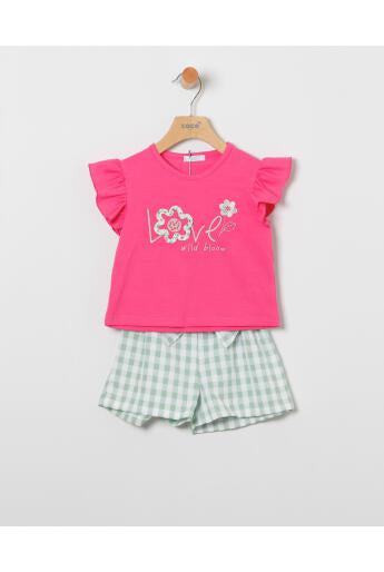 Conjunto niña en fucsia y short Vichy verde - Coco Acqua 2025