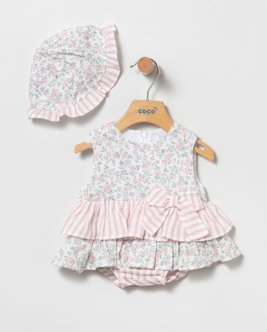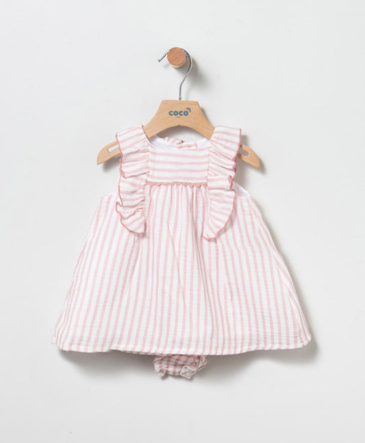 Vestido de bebé niña, en rayas, con braguita - Coco Acqua