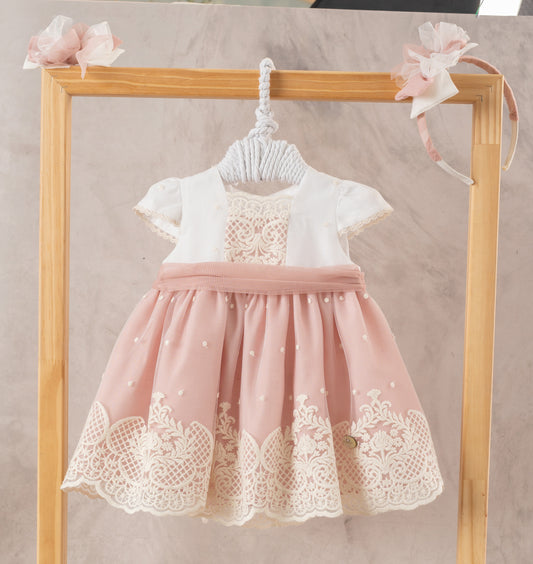 Vestido niña bebé rosa y beige - Basmarti verano 2024