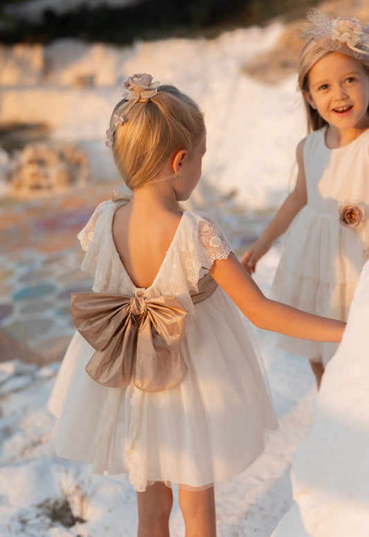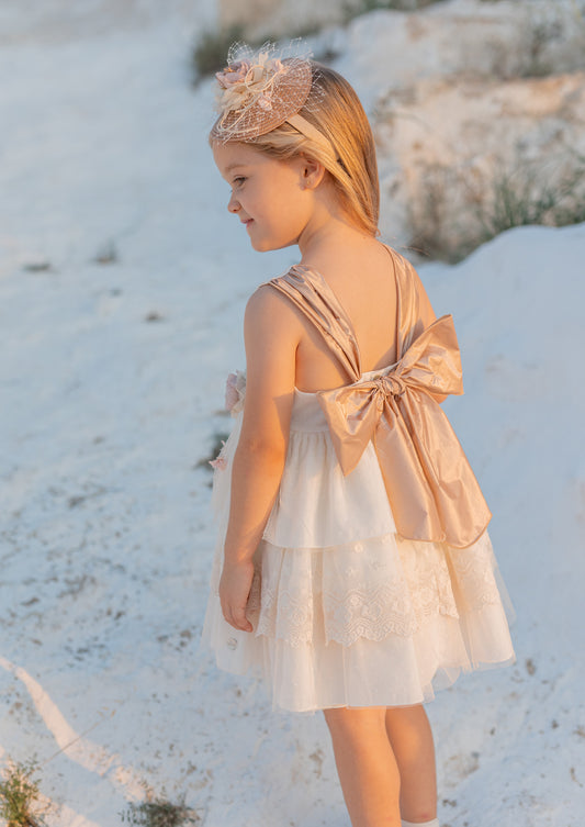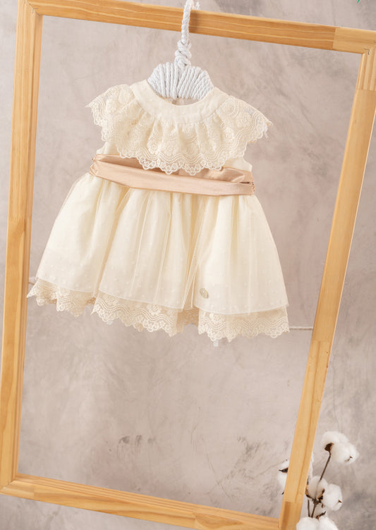 vestido niña blanco roto con lazo de tul - Basmarti verano 2024