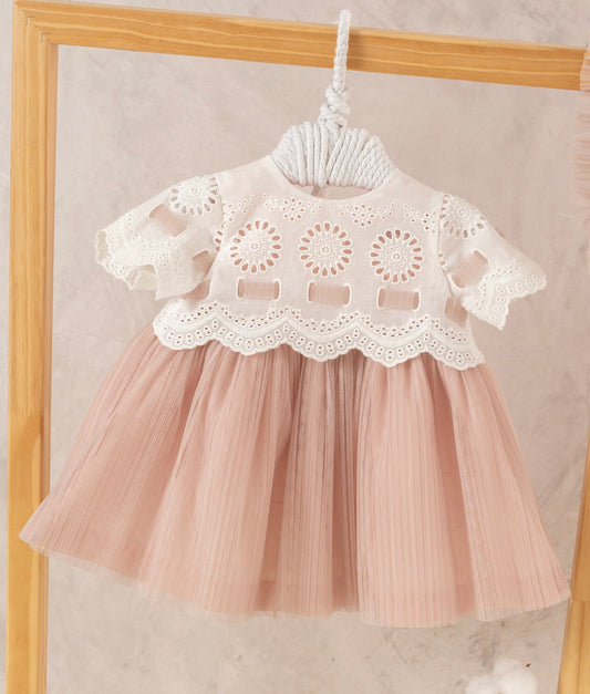 Vestido niña con tul rosa empolvado - Basmarti verano 2024