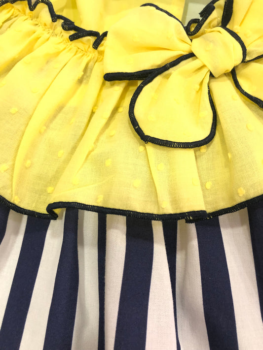 Vestido niña de rayas azul marino y blanco - Cuka verano 2024