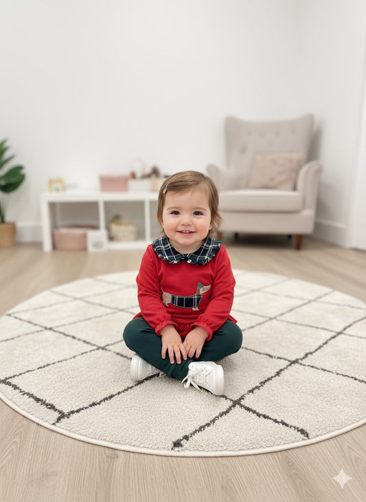 Chanda bebé en rojo con perro salchicha - Pequeños Piratas