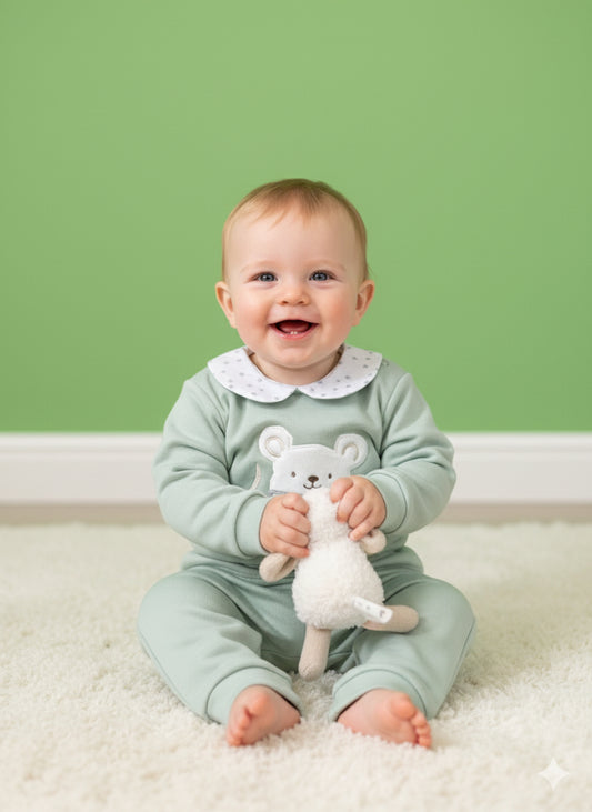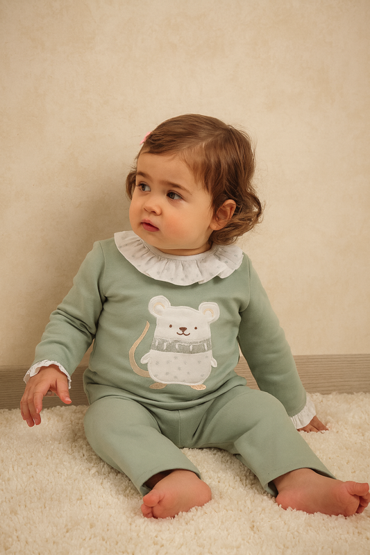 Chanda bebé en verde con ratón- Pequeños Piratas