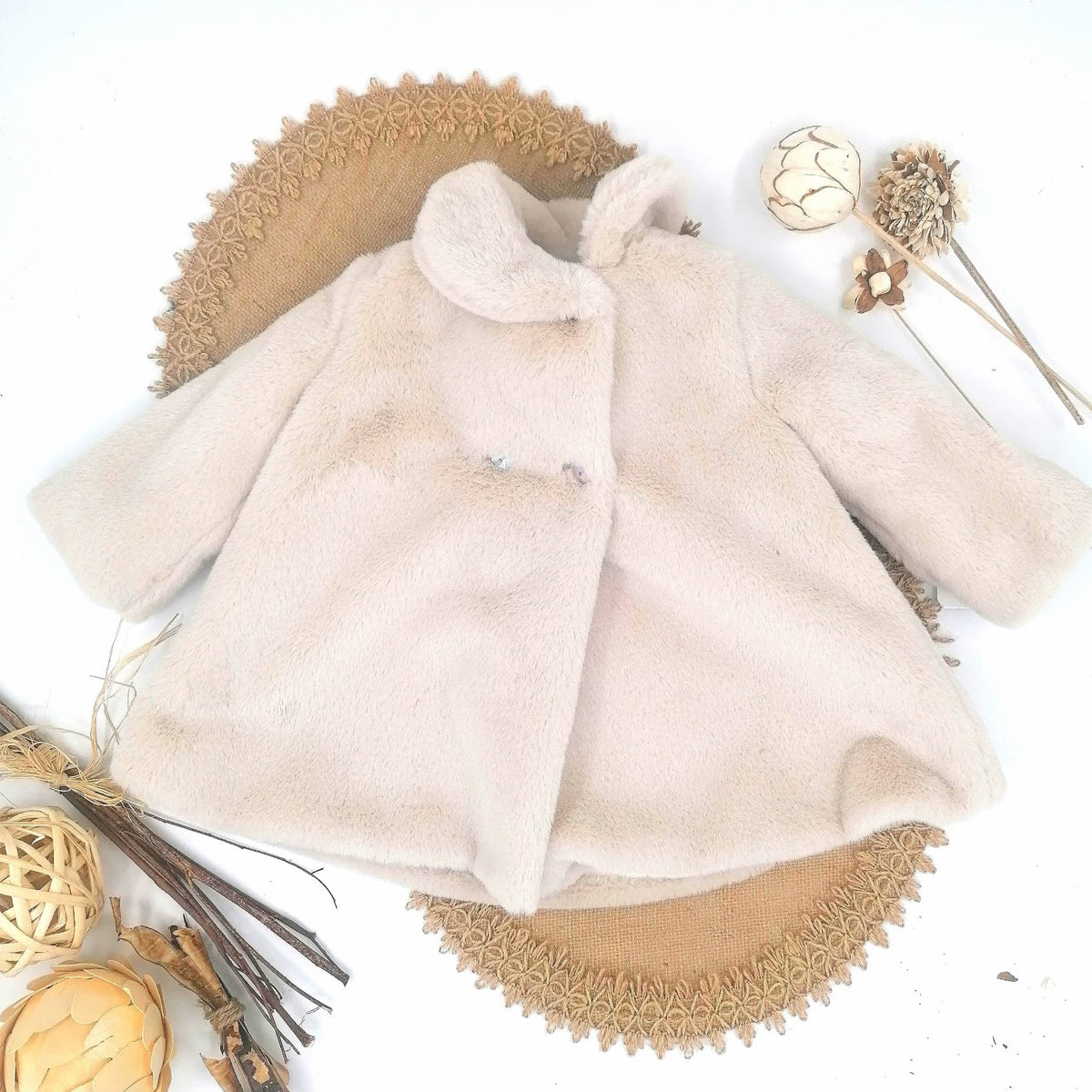 Abrigo de pelo color beige para bebe niña, cuello bebé sin capucha, con botones, tacto amoroso