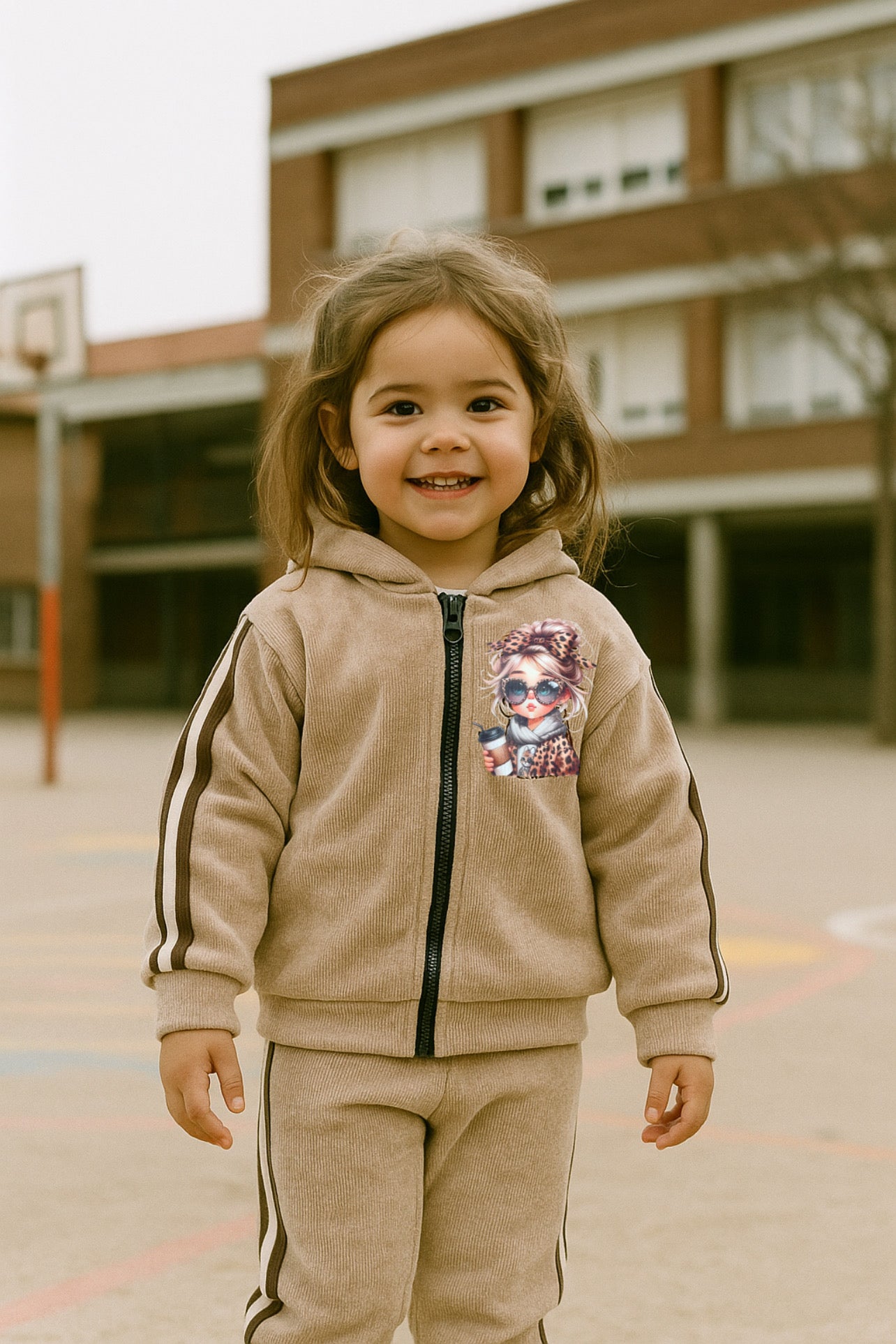 Chandal de niña con cremallera en color café y tejido como micropana muy suave