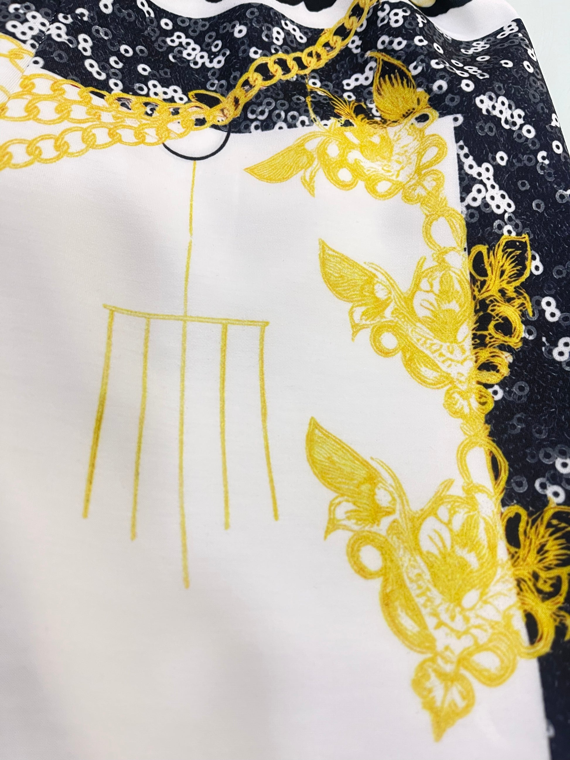 • Shorts Deportivos: En tono blanco con detalles cintura elástica para mayor comodidad y con cadenas pintadas decorativas que refuerzan el estilo urbano.