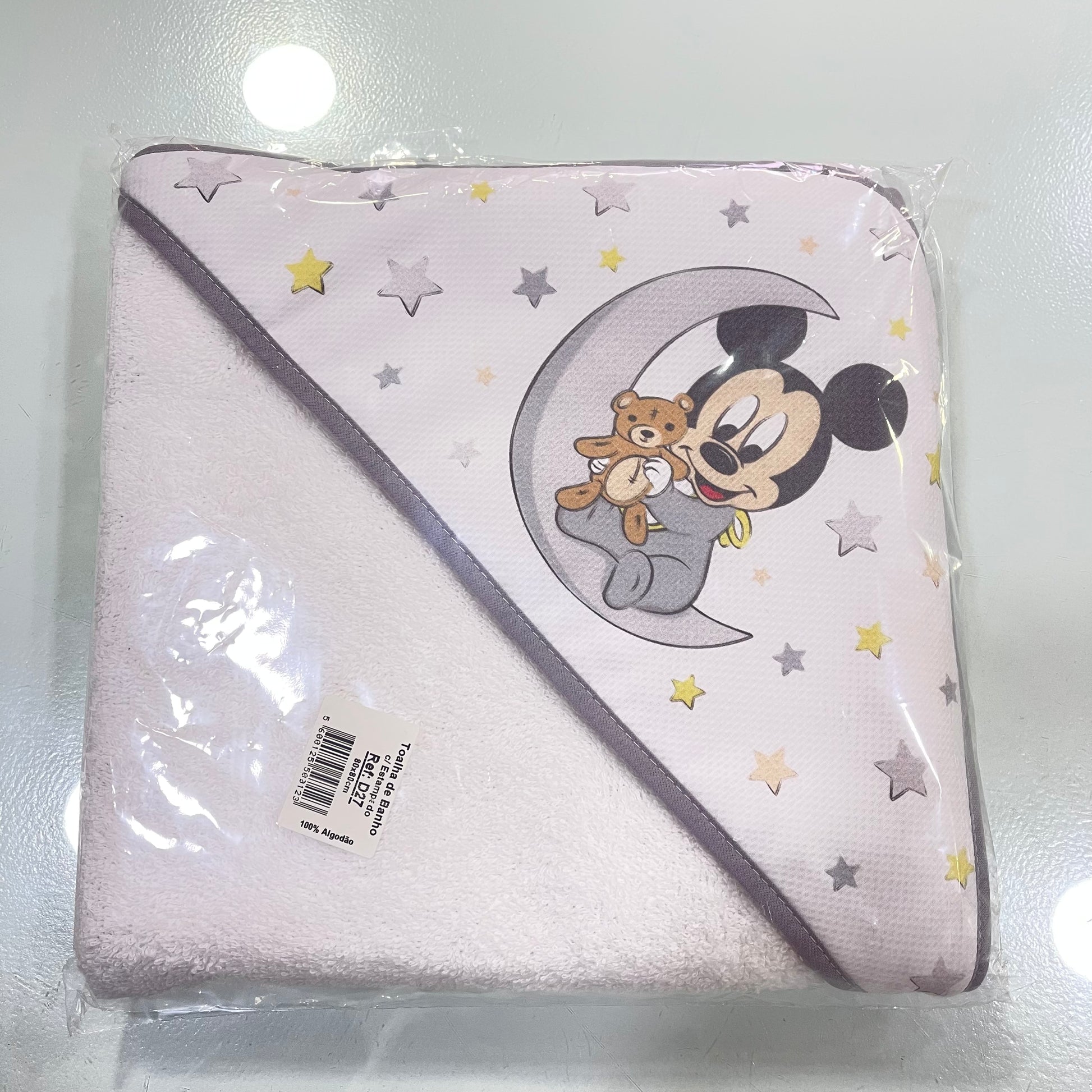Capa de baño con estampado Mickey en una luna …en color blanco y azul