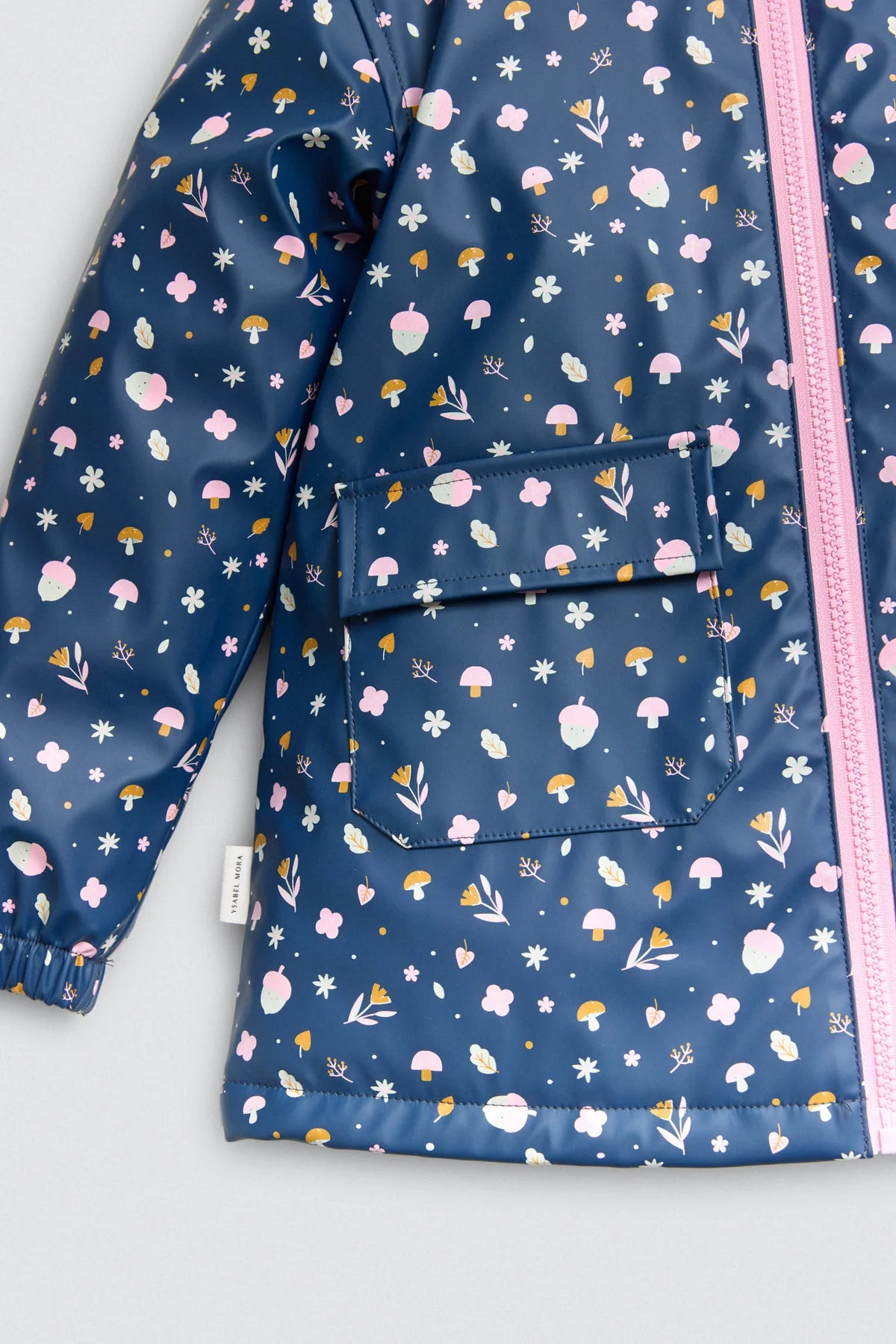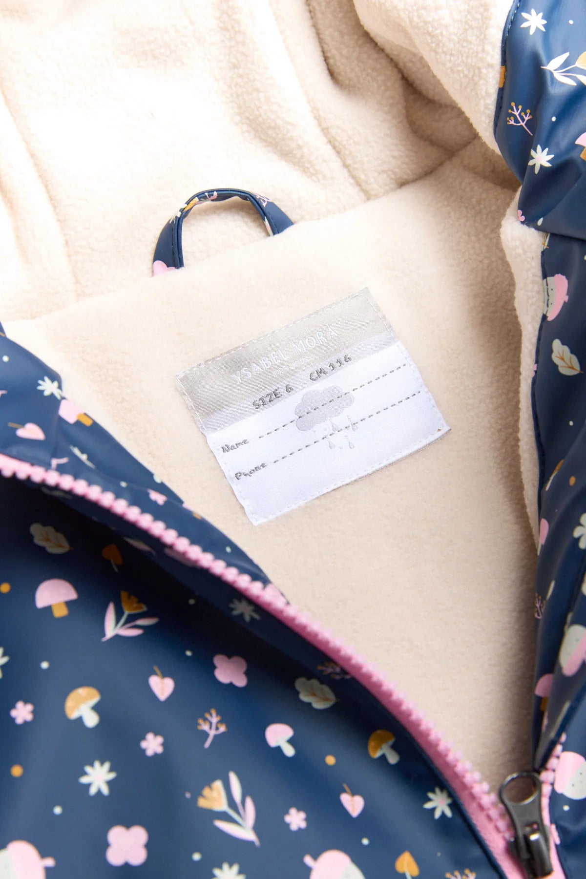 Este chubasquero infantil es perfecto para aventuras bajo la lluvia. Con un suave interior afelpado polar, capucha y prácticos bolsillos delanteros. El tejido exterior es engomado y repelente al agua. Mantiene a los niños abrigados y secos en los días fríos de lluvia. El emocionante diseño “hojas ” les invita a explorar nuevos mundos mientras se mantienen protegidos. Con cierre de cremallera para mayor comodidad, ¡este chubasquero es ideal para pequeños exploradores!.