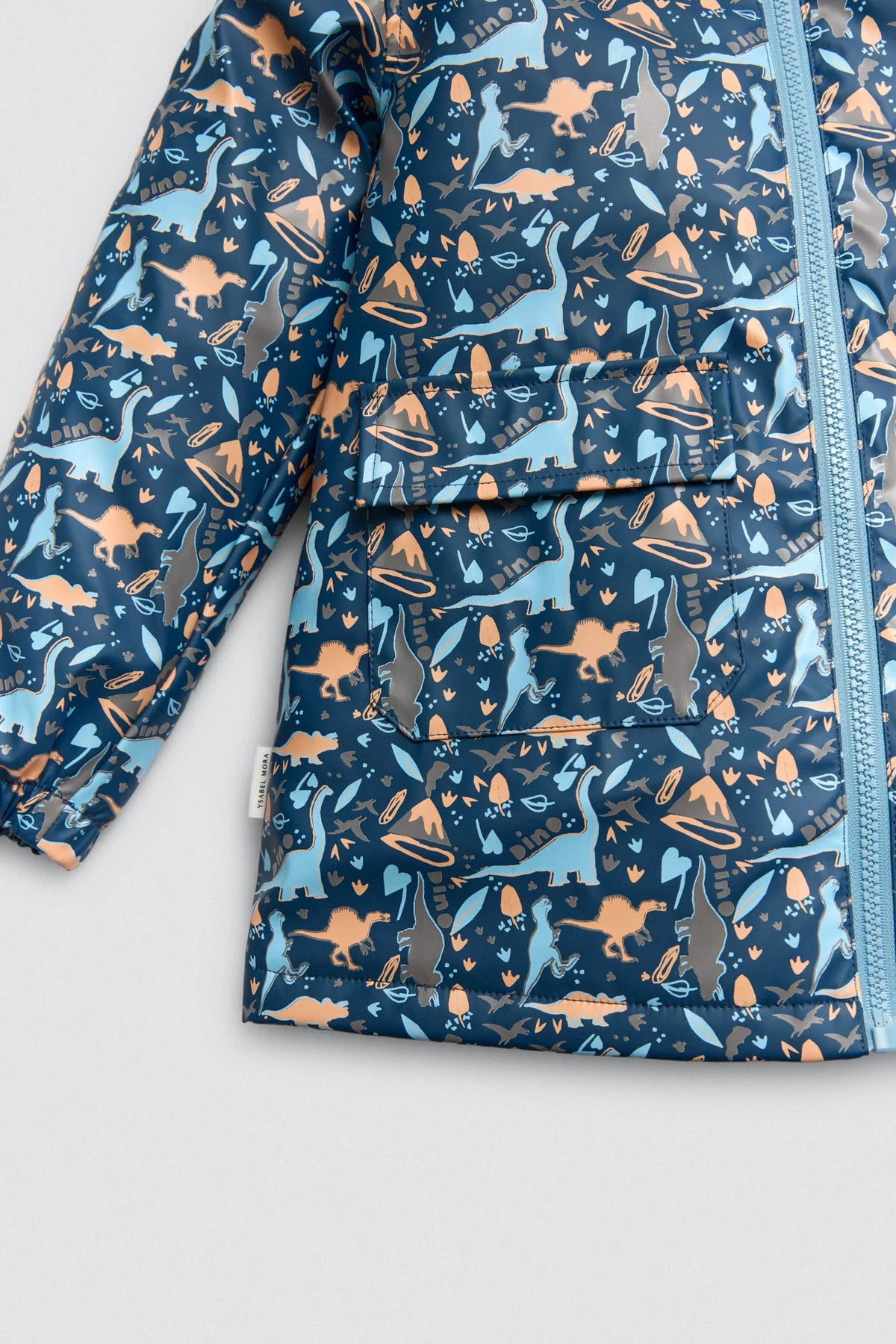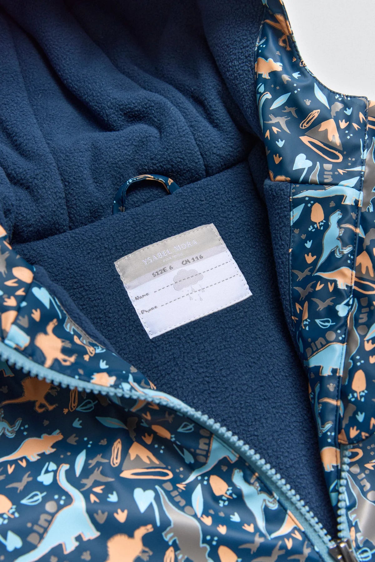 Este chubasquero infantil es perfecto para aventuras bajo la lluvia. Con un suave interior afelpado polar, capucha y prácticos bolsillos delanteros. El tejido exterior es engomado y repelente al agua. Mantiene a los niños abrigados y secos en los días fríos de lluvia. El emocionante diseño “dinosaurios ” les invita a explorar nuevos mundos mientras se mantienen protegidos. Con cierre de cremallera para mayor comodidad, ¡este chubasquero es ideal para pequeños exploradores!.