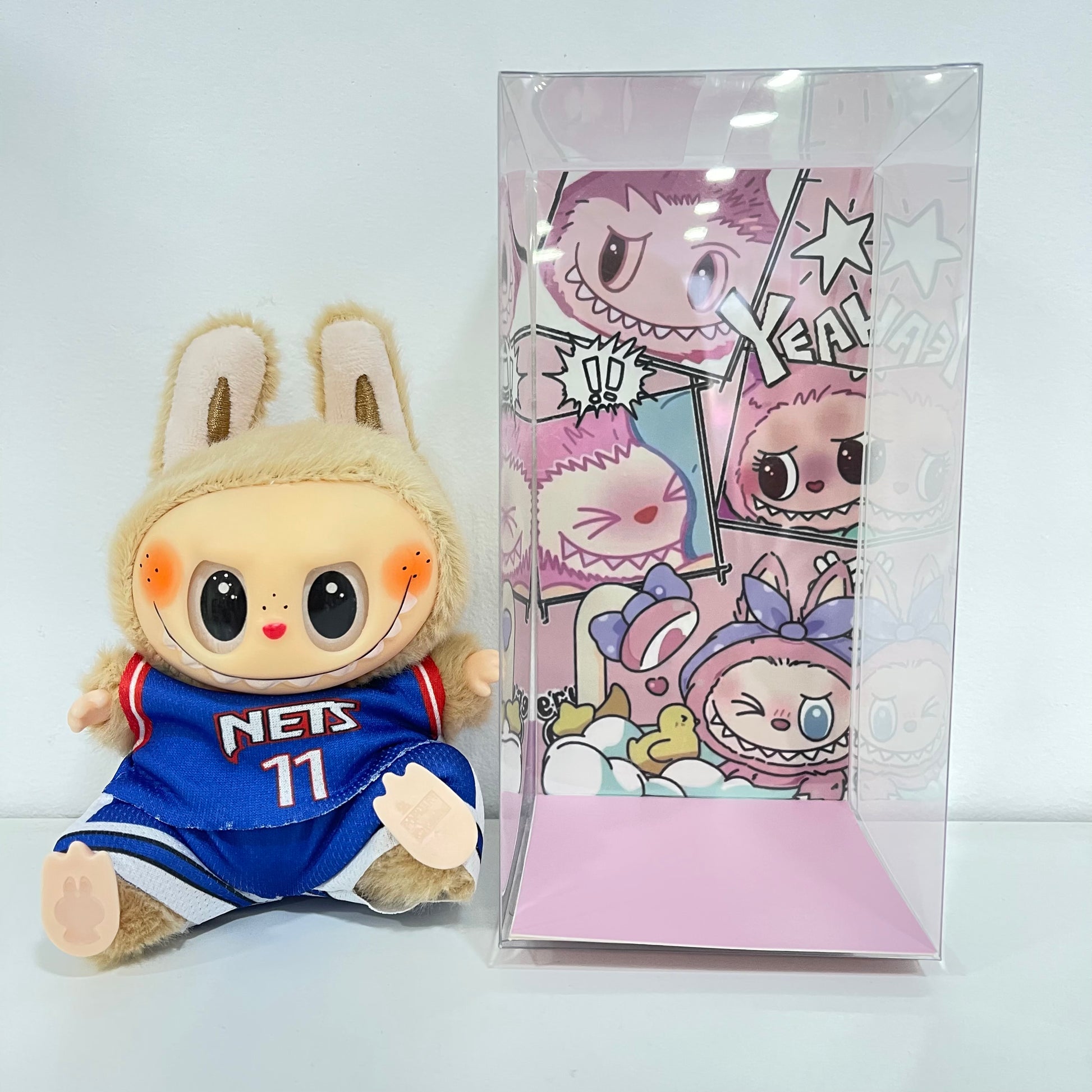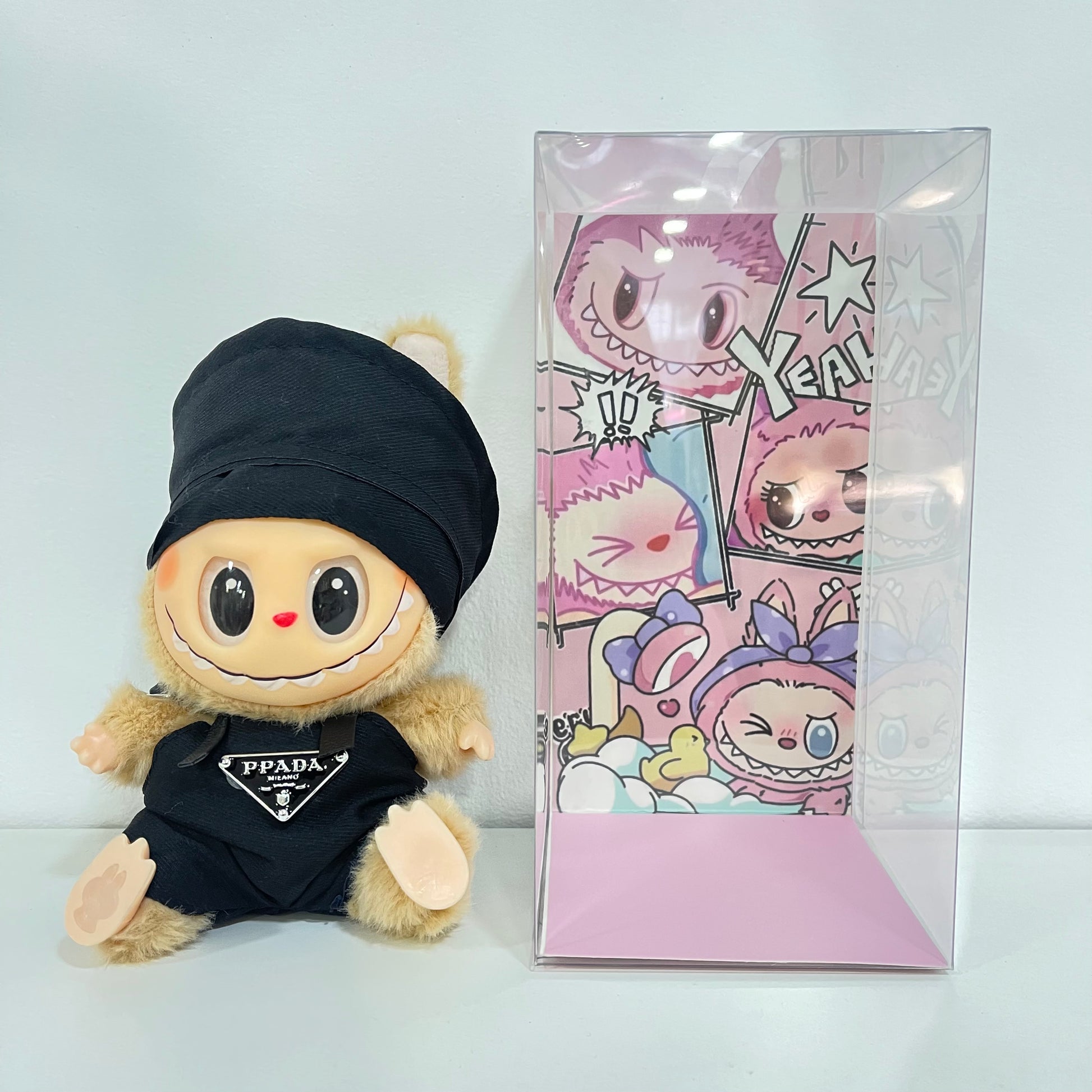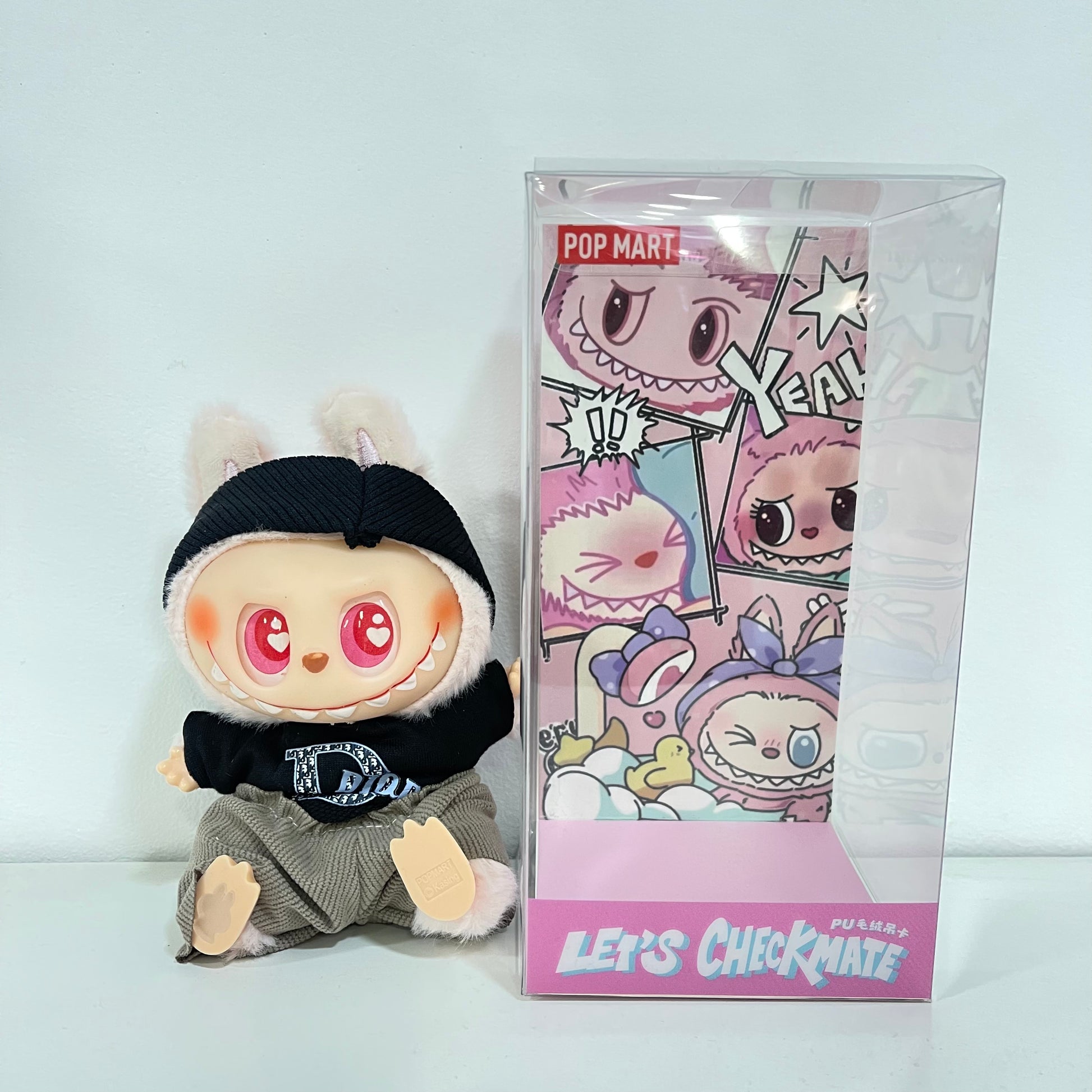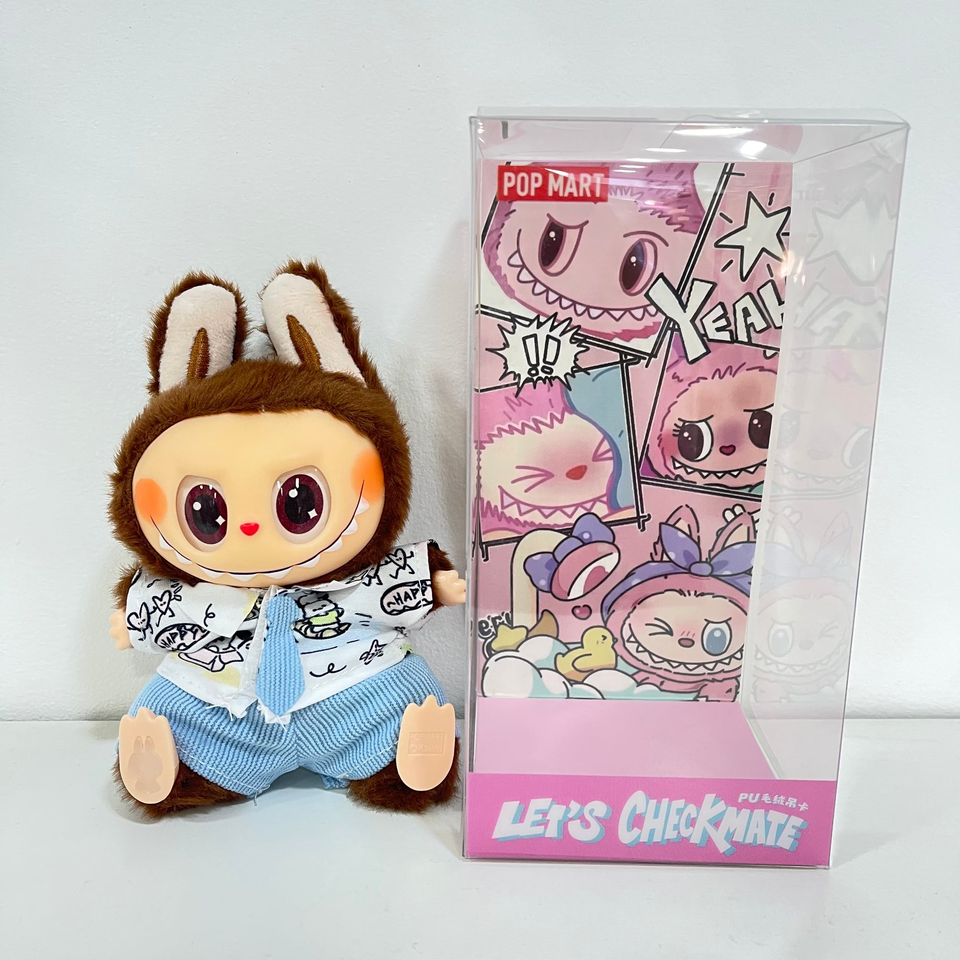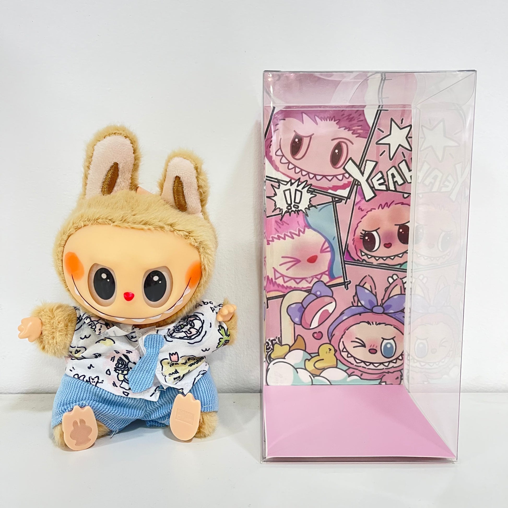 Labubu con ropa y sentados