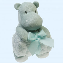 Set de regalo en beige de 2 piezas compuesta por una mantita de 80 x 110cm y un bonito hipopótamo en verde.