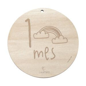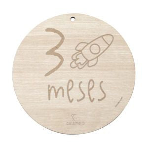 • Cada disco está grabado a láser con el número del mes (o "1 año") y una ilustración temática sencilla (arcoíris, pelota, cohete, ballena, abeja, tarta, etc.) y la palabra "meses" o "año".