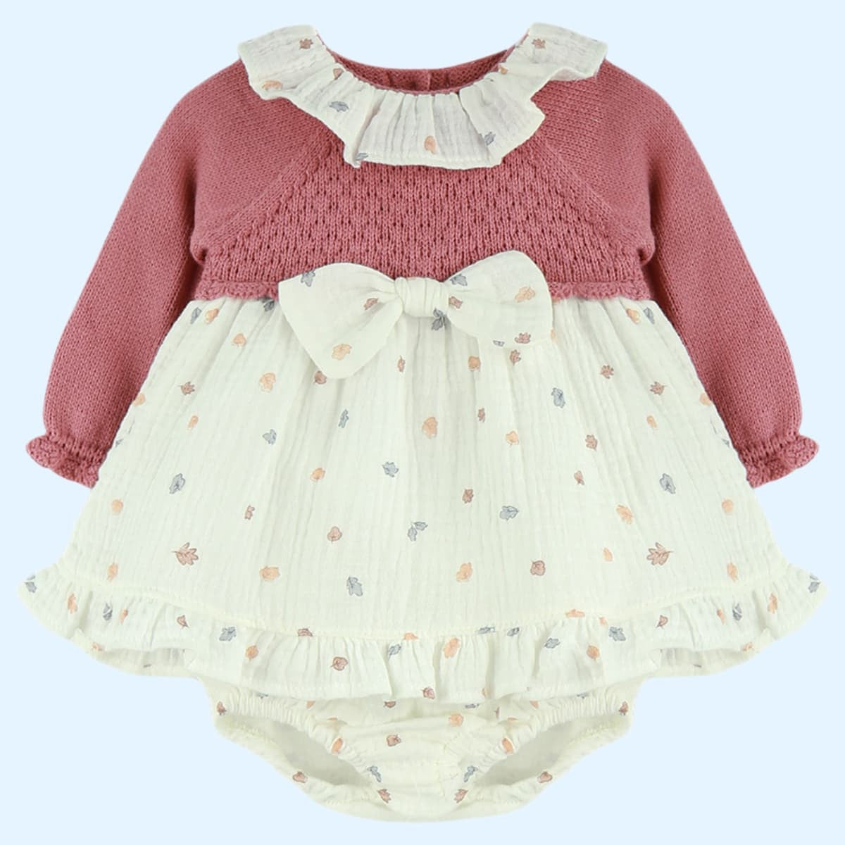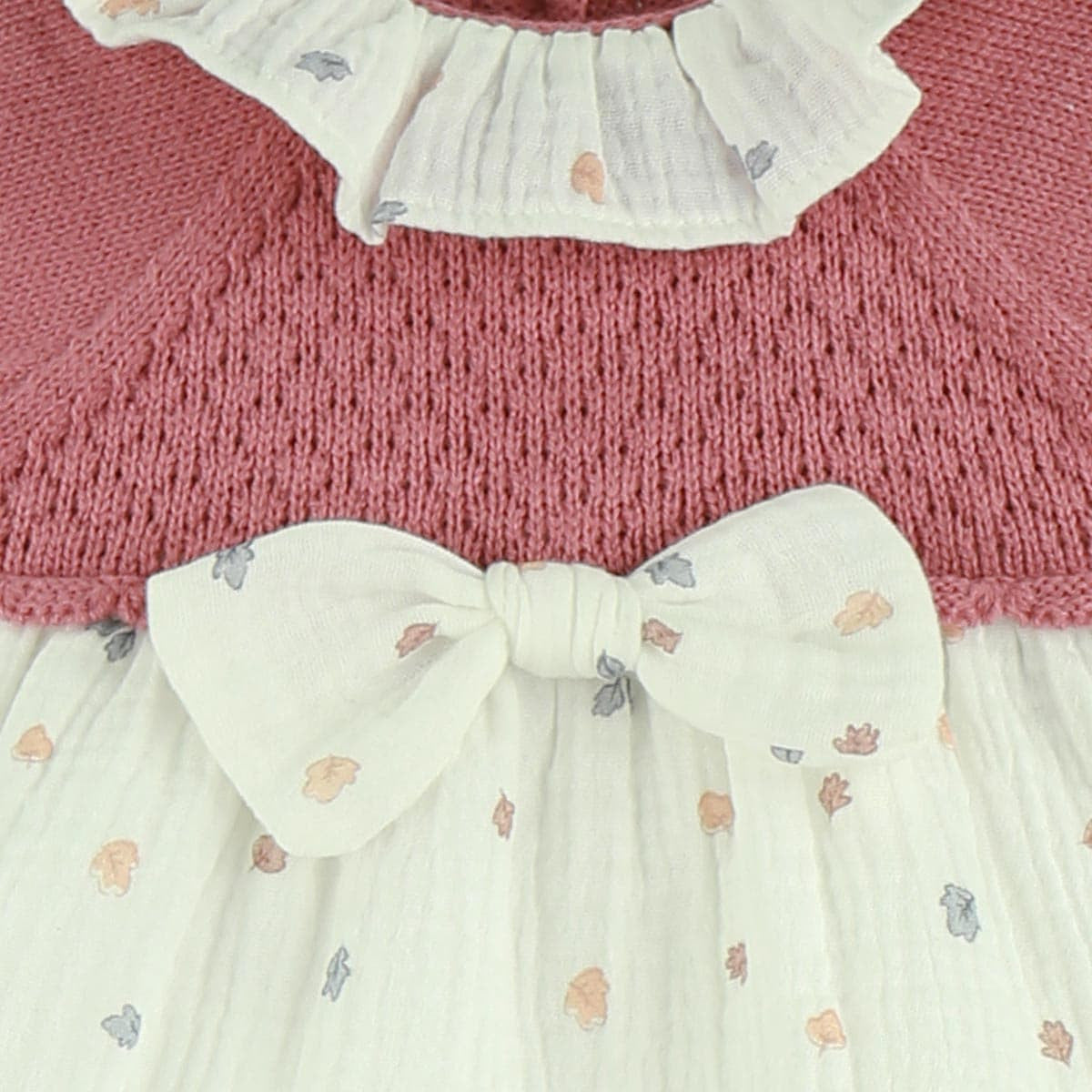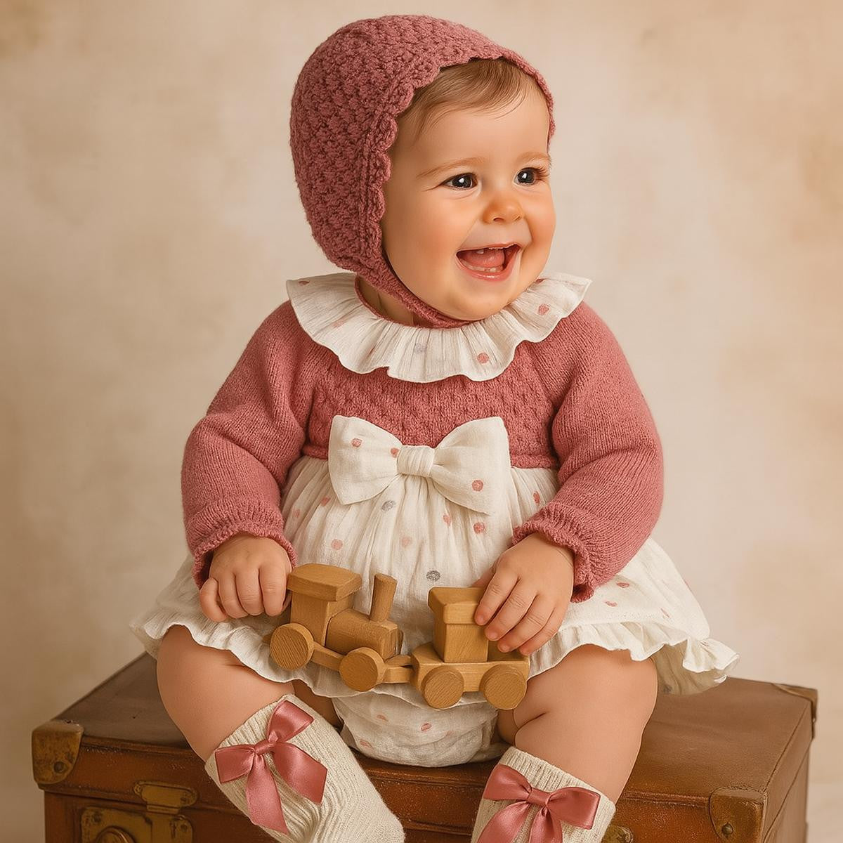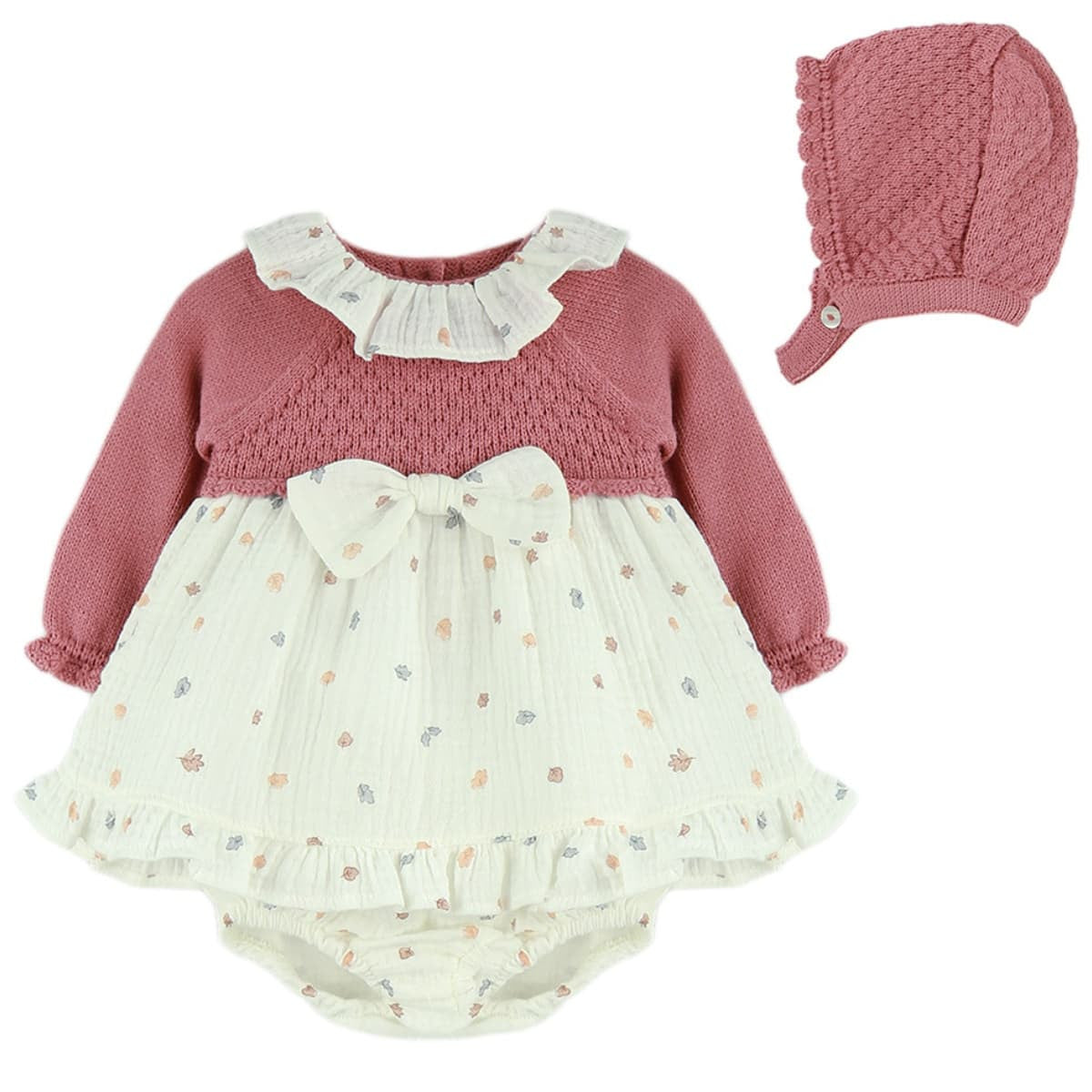 Precioso jesusito de niña bebé, con capota, en color maquillaje, con tejido de unas bonitas 🍂 hojas y braguita con el mismo tejido.