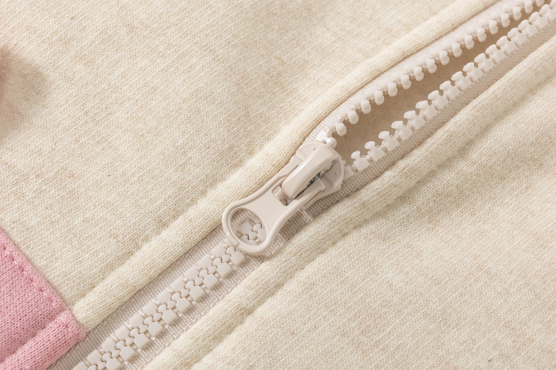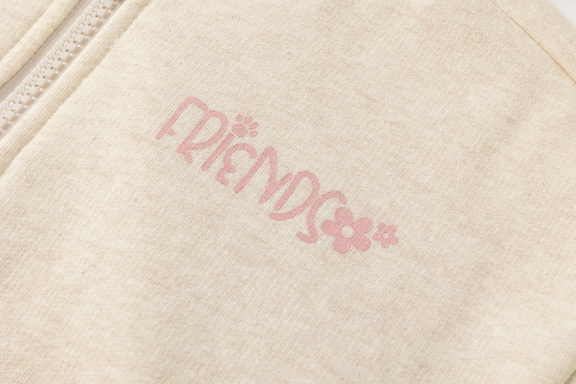 Chaqueta afelpada de niña en beige, con capucha , detalle de orejitas en el bolsillo delantero, cierre delantero con cremallera