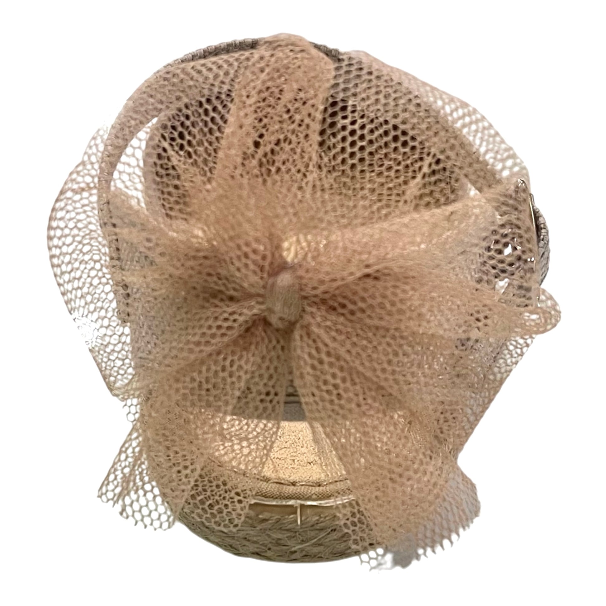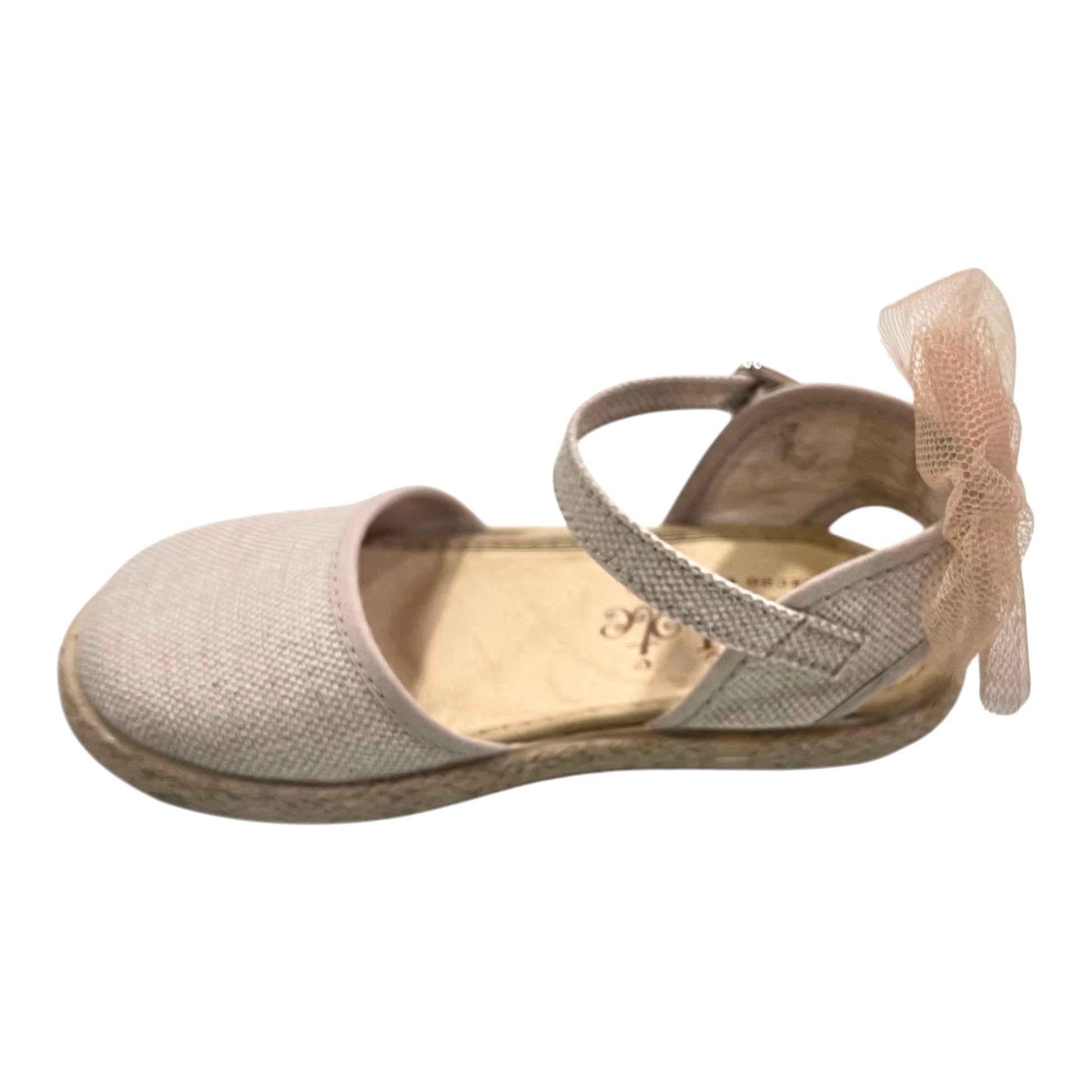 Valenciana de niña en color natural, con el talón un poquito abierto y lazo decorativo en tul de color tostado