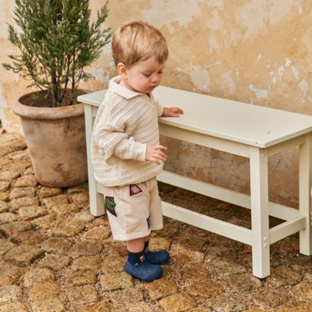 La suela barefoot acompaña el desarrollo motor, y su confección en algodón OEKO-TEX® garantiza seguridad y confort a diario.